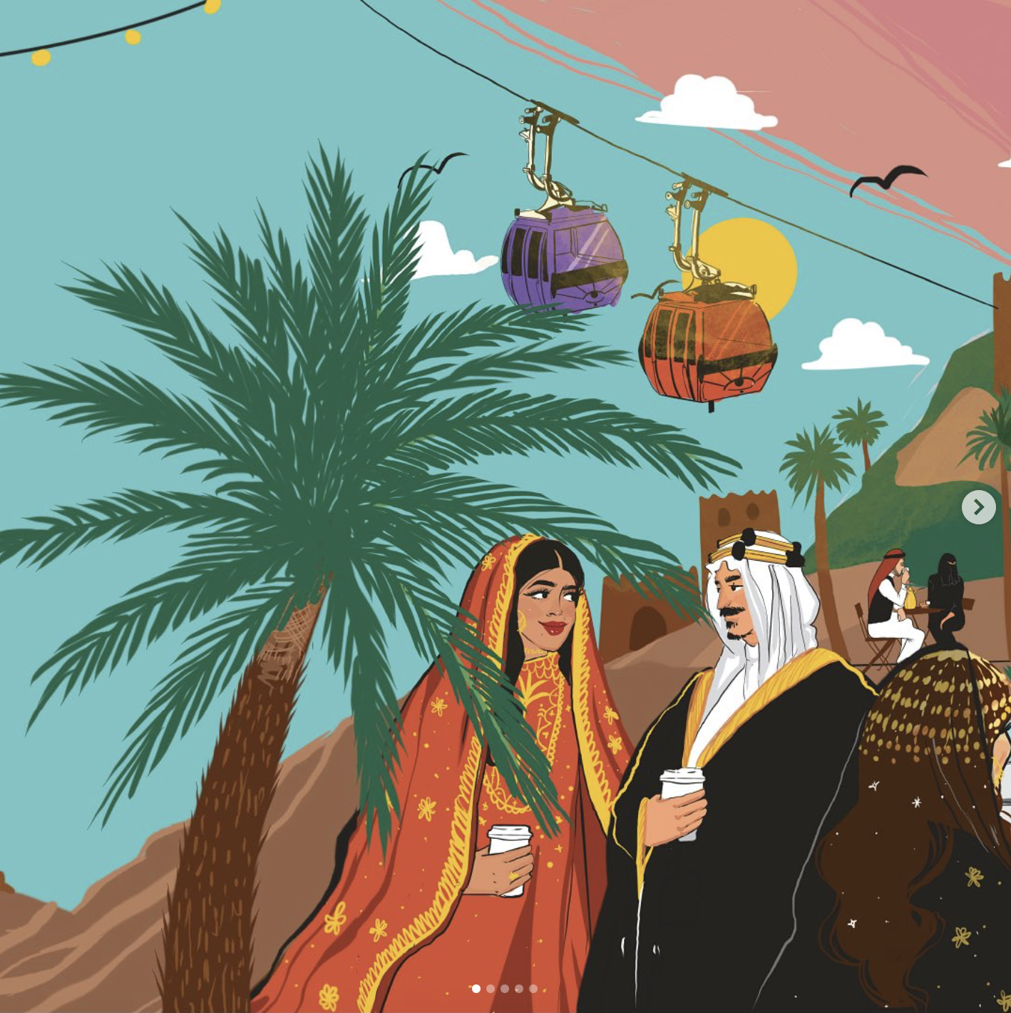 I collaborated with Costa Coffee to create an artwork for their coffee cup sleeve, in celebration of Foundation Saudi Day. The artwork features Saudi characters dressed in traditional attire, enjoying a cup of coffee.
